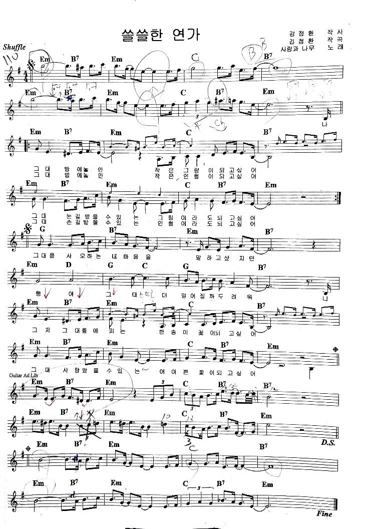 쓸쓸한 연가 - 사람과 나무 악보, 가사